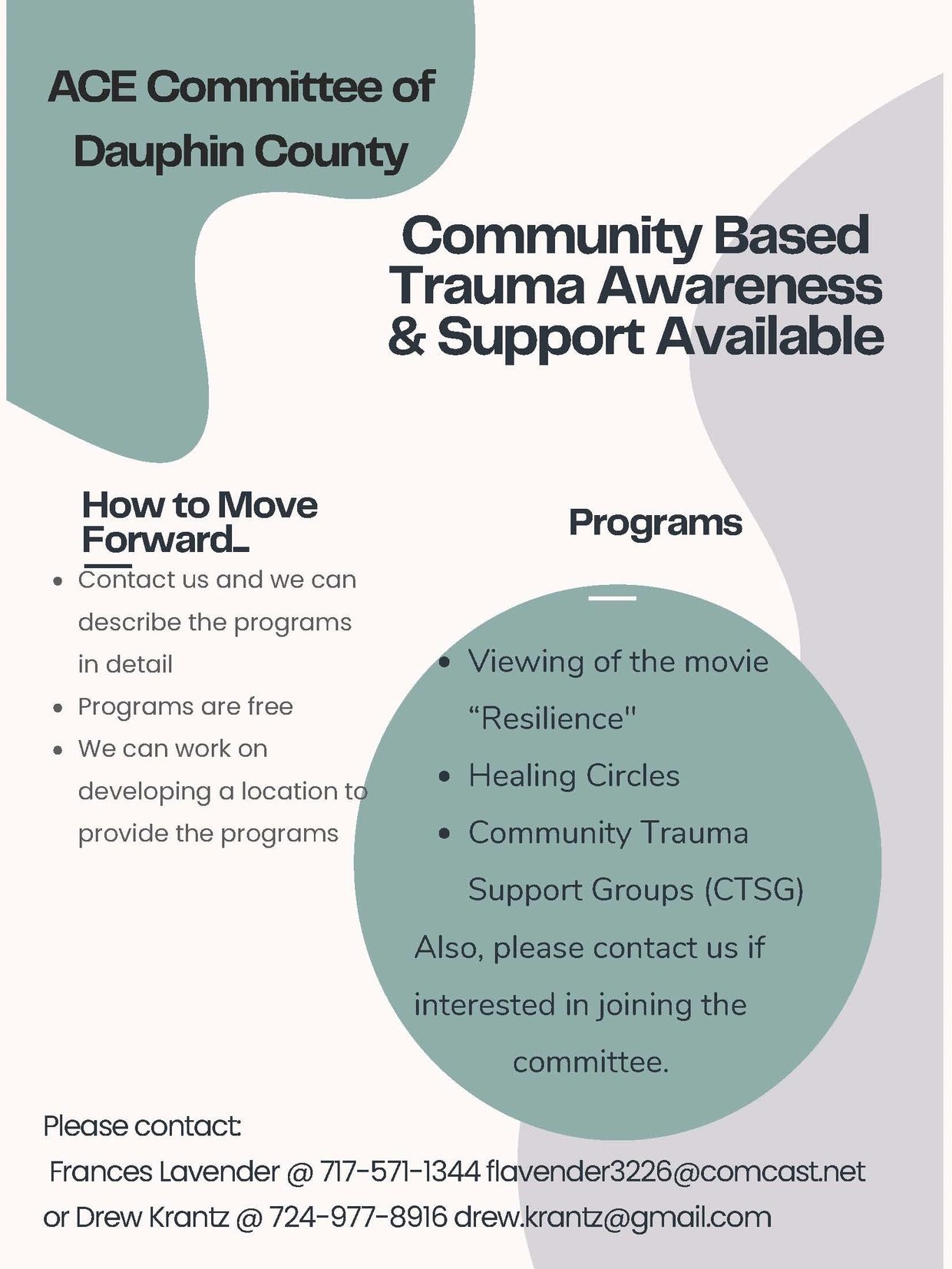 Facilitating healing to Dauphin County communities through trauma-informed education to increase resiliency and enhance overall well-being.
